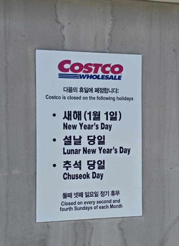 코스트코 설날 당일에 휴무일입니다. 이 외에도 1월 12일, 26일은 휴무일이니 참고하세요.