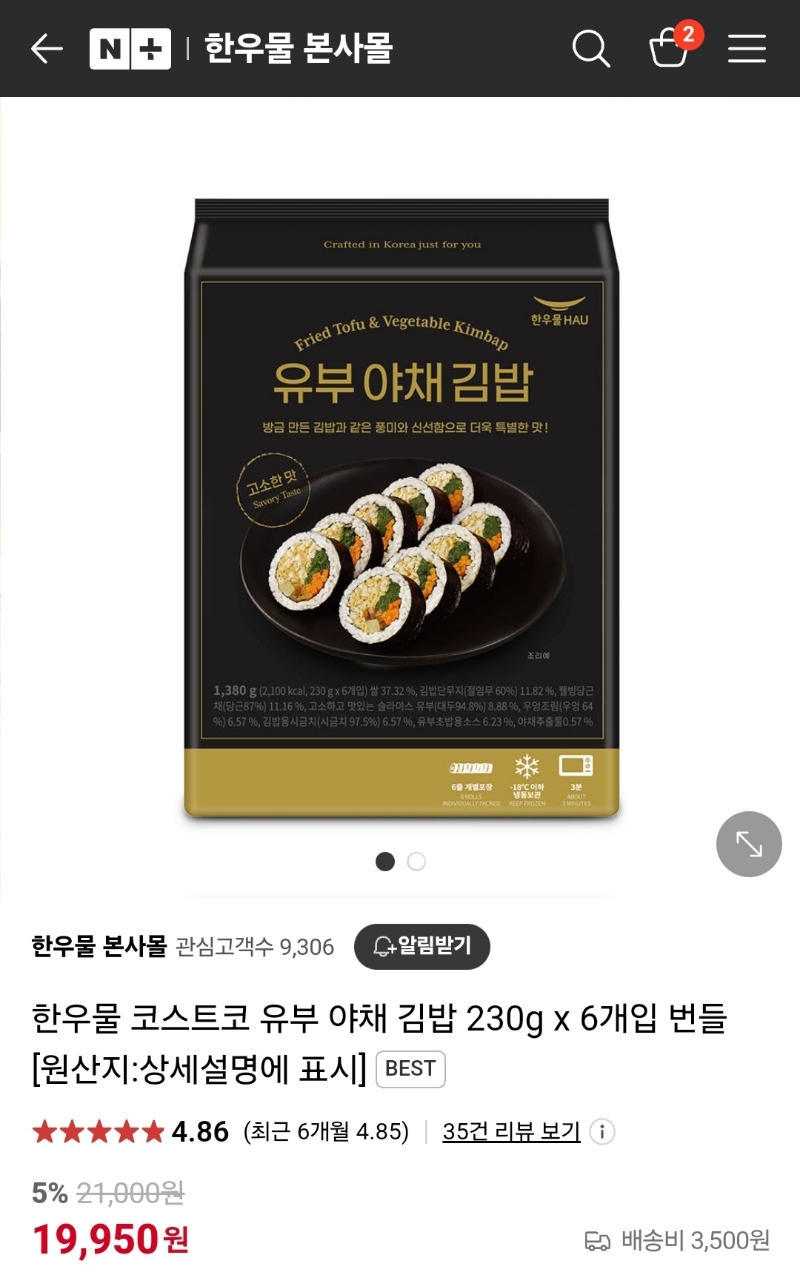 그래서 다른 루트로 코스트코 김밥을 살 수 있나 해서 알아보니 한우물 본사몰이 있더라고요.