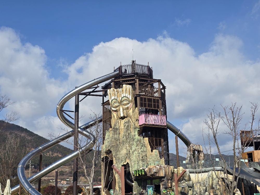 거제 정글돔 주차장에 주차를 하면 가장 먼저 보이는 것이 이 정글타워입니다. 저도 아이들이 조금 더 크면 오고싶을만큼 너무너무 재미있어 보였는데 정말 길고 길고 긴 미끄럼틀이 여러 개 있었고 타워 꼭대기에 올라가서 전망을 보는 것도 좋을 것 같았습니다.