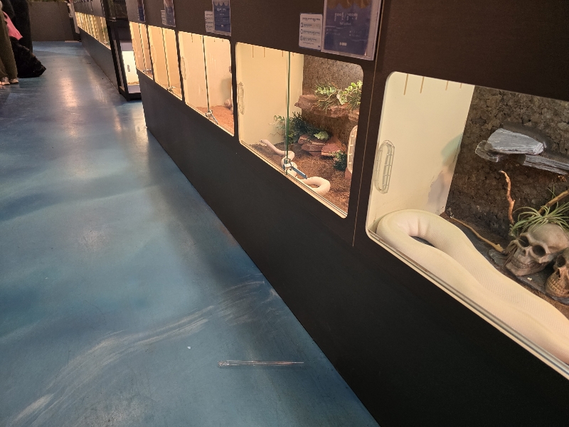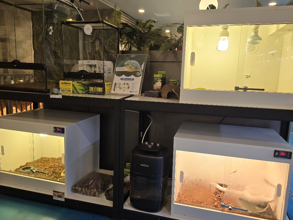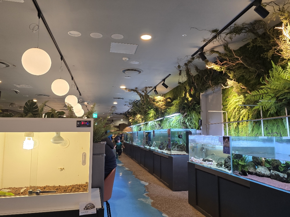 매장 내부에는 다양한 파충류, 양서류, 어류 친구들이 있습니다. 이 곳의 장점은 아이들 눈높이에 맞추어 대부분의 사육장이 낮게 위치해있다는 점이예요. 그래서 어린 친구들도 동물들을 관찰하기 편리한 곳입니다.