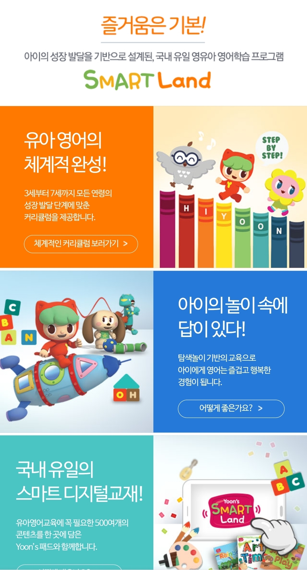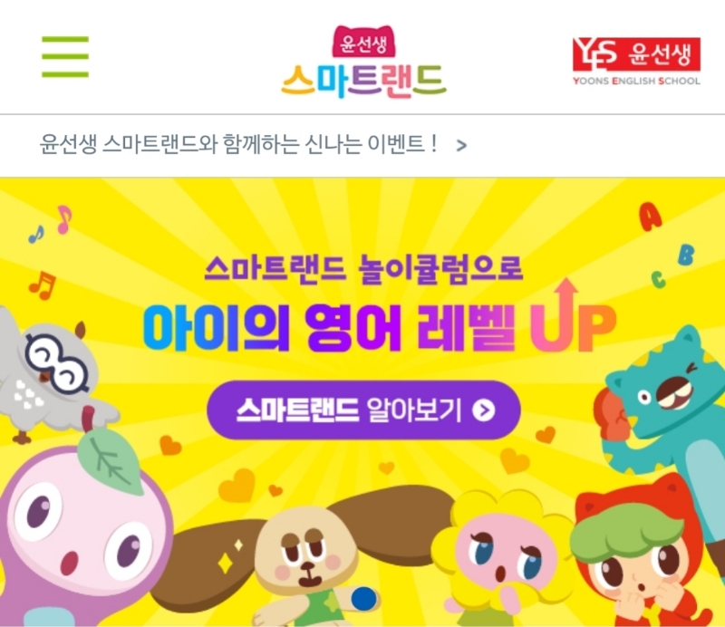 그래서 책이나 교재 위주가 아닌 놀이 위주의 영어수업을 찾아보다가 윤선생 스마트랜드를 알게 되었어요.