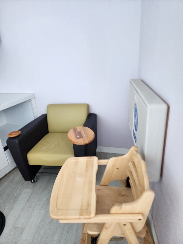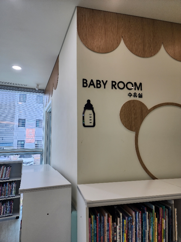 수유실은 키즈룸 안쪽에 있으며, 1층 및 2층에 각 1개씩 있습니다. 수유실 컨디션은 백화점처럼 엄청 좋은 환경은 아니지만 대체로 깨끗하고 깔끔합니다. 유일한 단점이 안에 휴지통이 없다는 정도입니다. 보통 도서관에 오는 영유아의 경우 수유를 하는 경우 보다는 기저귀를 갈러 오는 경우가 많을텐데 도서관에서 기저귀 갈만한 별도의 공간이 있다는 것만으로도 저는 만족했습니다.