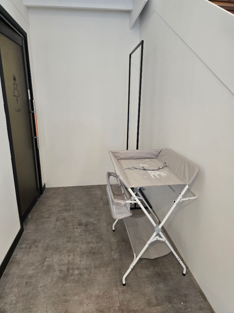- 수유실 및 기저귀갈이대 : 수유실은 없으나 기저귀갈이대는 있음(1층 화장실 앞에 위치)