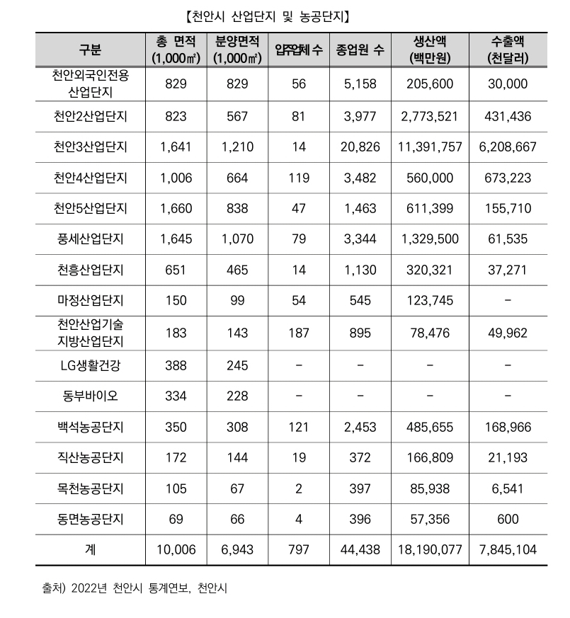 4. 천안시 산업단지 및 농공단지