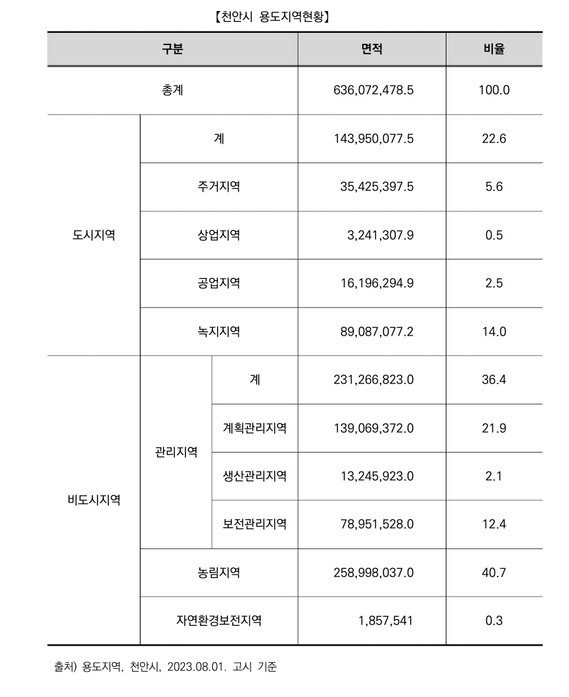 3. 천안의 토지이용현황 : 용도지역