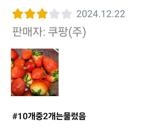 마지막으로, 제가 이번에 쿠팡프레시로 제품을 받으면서 불미스러운 일이 몇 번 있어서 그에 대한 불만제기를 한 것이 체험단 초대에 영향을 준 것 같습니다. 일례로, 쿠팡프레시로 떠먹는 요거트를 주문했는데 당근하고 같이 시켜서인지 요거트 두 개가 깨져서 터져있었습니다. 그래서 이것에 대한 불만을 제기했고요. 멀쩡한 것들은 당장 먹어야해서 환불조치는 안했지만, 쿠팡 배송에 대한 안좋은 리뷰를 썼는데 이것 때문에 체험단에 낙방했나 하는 생각이 들었습니다. 그리고 딸기를 주문했는데 딸기 상태가 좋지 않아서 이부분에 대해서도 솔직한 리뷰를 썼고요. 만약 이런 리뷰 때문에 떨어진 것이라면 불합리 하지만 어쩔수 없지요.