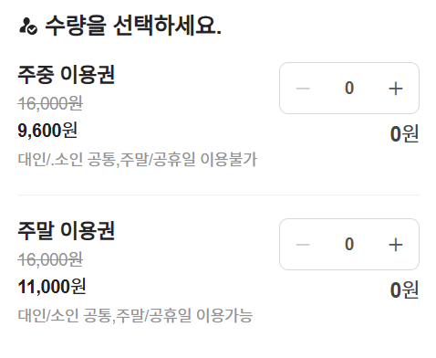 우선, 입장료는 네이버에서 구매 시 주중이용권 9,600원, 주말이용권 11,000원(대소인 동일가격)이며 36개월 이하 아이는 무료입장 가능합니다. (주의사항! 당일구매 당일사용 안됩니다. 가실 분들은 꼭 전날 미리 예매하세요!)