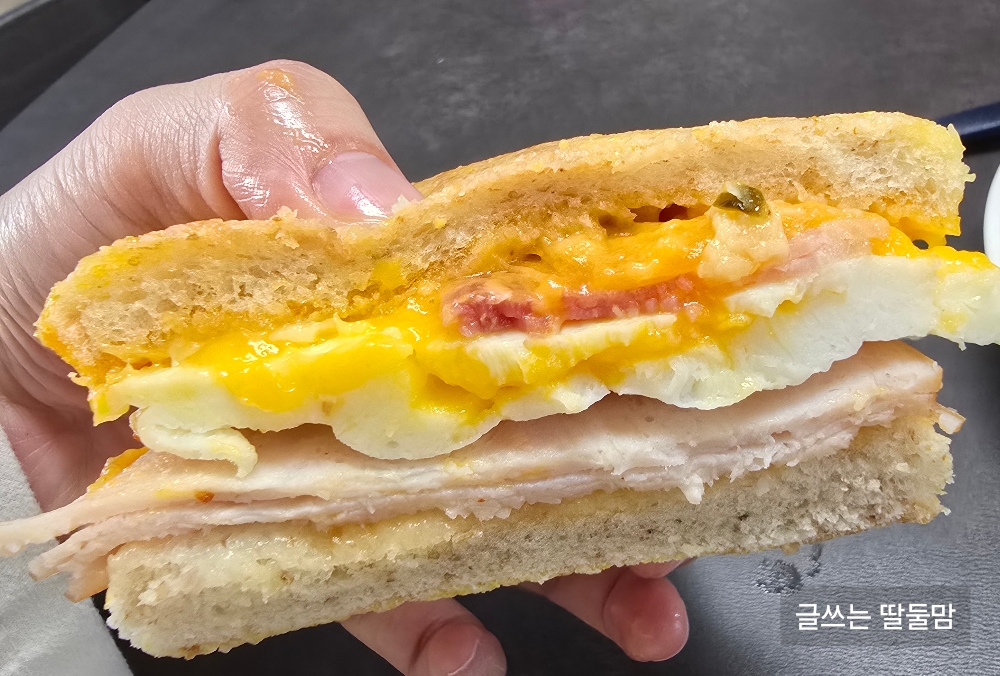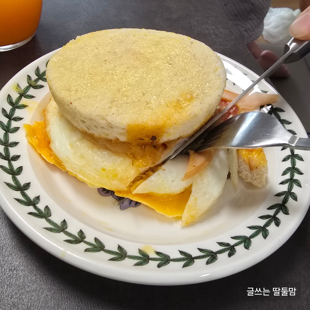 단면을 보니 맥모닝에서 파는 제품과 유사하죠? 아침식사로 딱 좋아요! 이걸로 아침 해결!