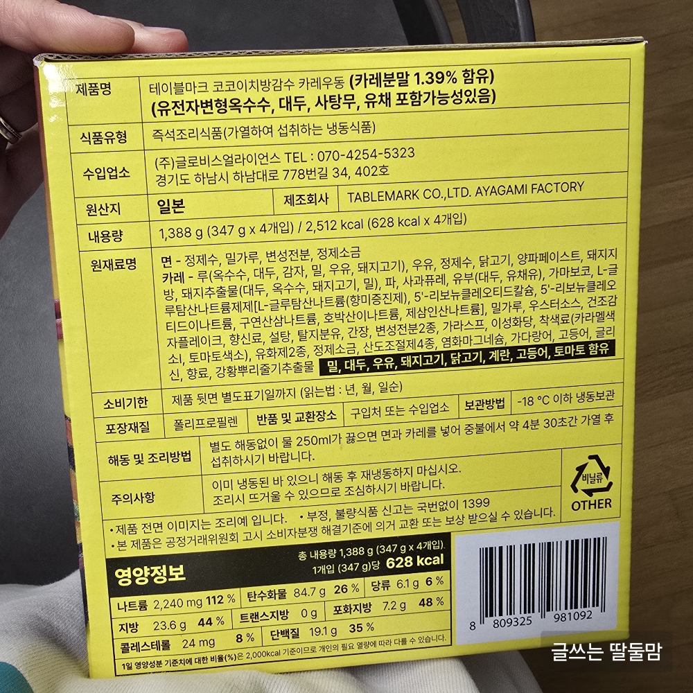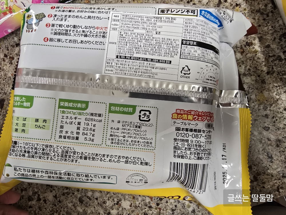 - 조리방법 : 라면과 동일, 카레스프를 먼저 넣는다는 차이만 있음