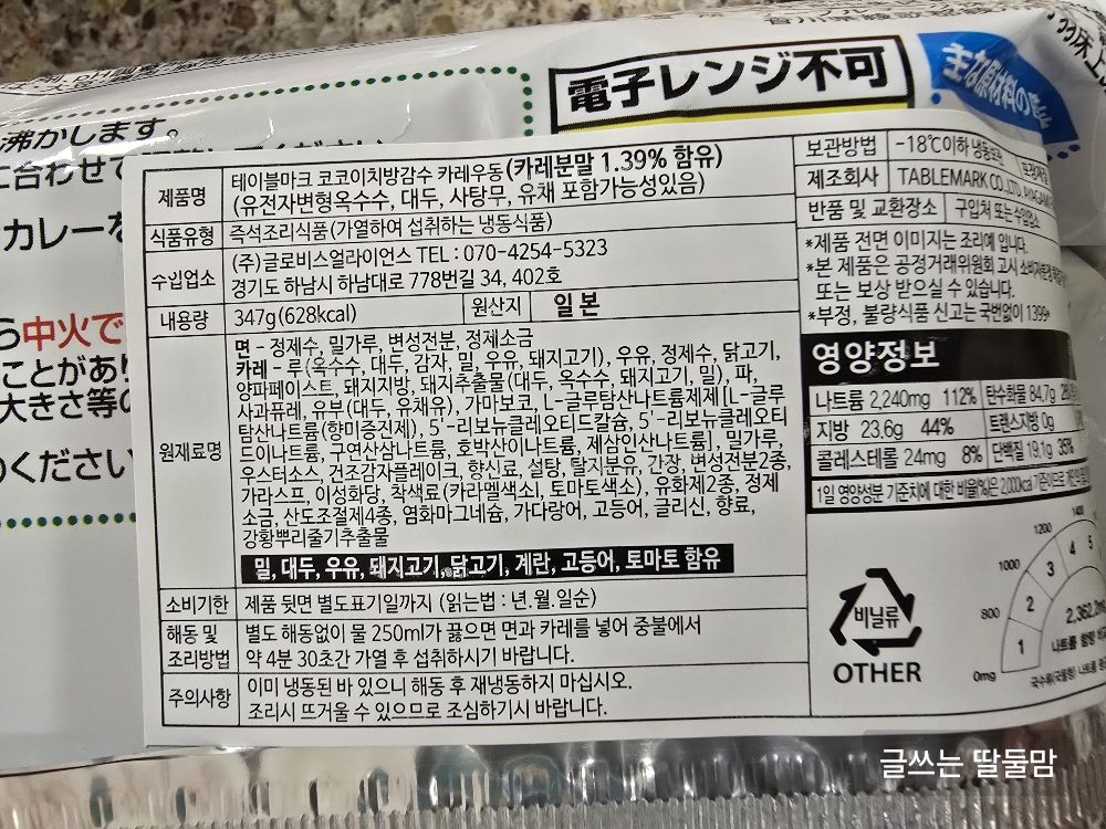 - 조리방법 : 전자레인지에 데움(아래 주의사항 있음)