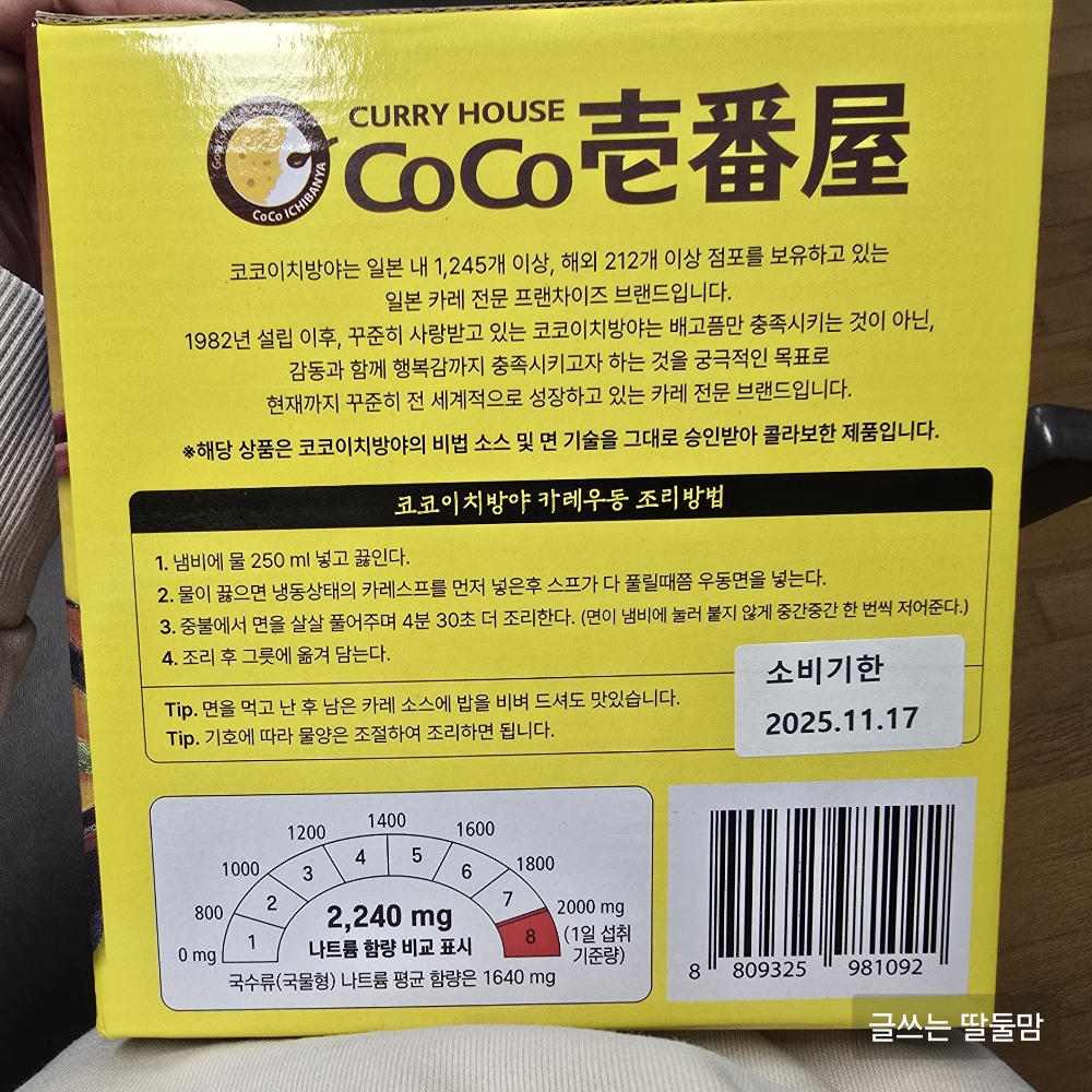 - 소비기한 : 구입일 기준 약 8개월 남음