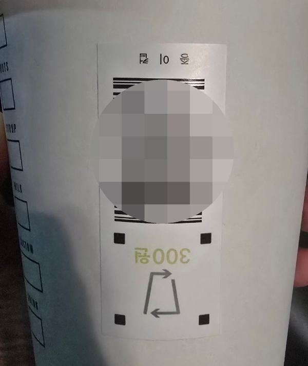 세종시 내 스타벅스에는 컵 보증금 제도가 있습니다. 테이크아웃으로 따뜻한 음료를 시키니 종이컵에 담겨 나오는데 타 지점과 동일한 종이컵이더라고요. 그런데 거기에 바코드가 달린 스티커를 붙여줍니다.