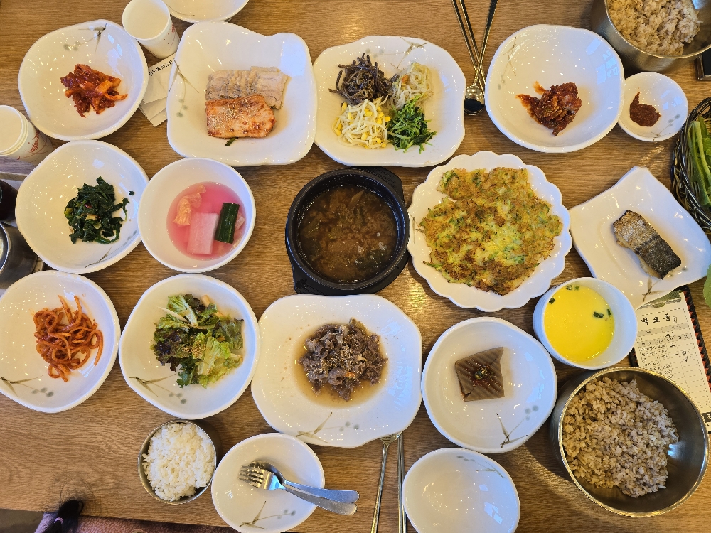 거기에 아기에게 먹이기 좋은 수육, 불고기, 계란찜, 전, 맵지 않은 나물들로 잘 구성이 되어 있어서 어른들 뿐만 아니라 아이들도 배불리 한상 먹을 수 있는 곳입니다. 저는 특히 불고기가 맛있었어요. 큰 아이도 불고기로 밥 한그릇 뚝딱 먹었습니다.