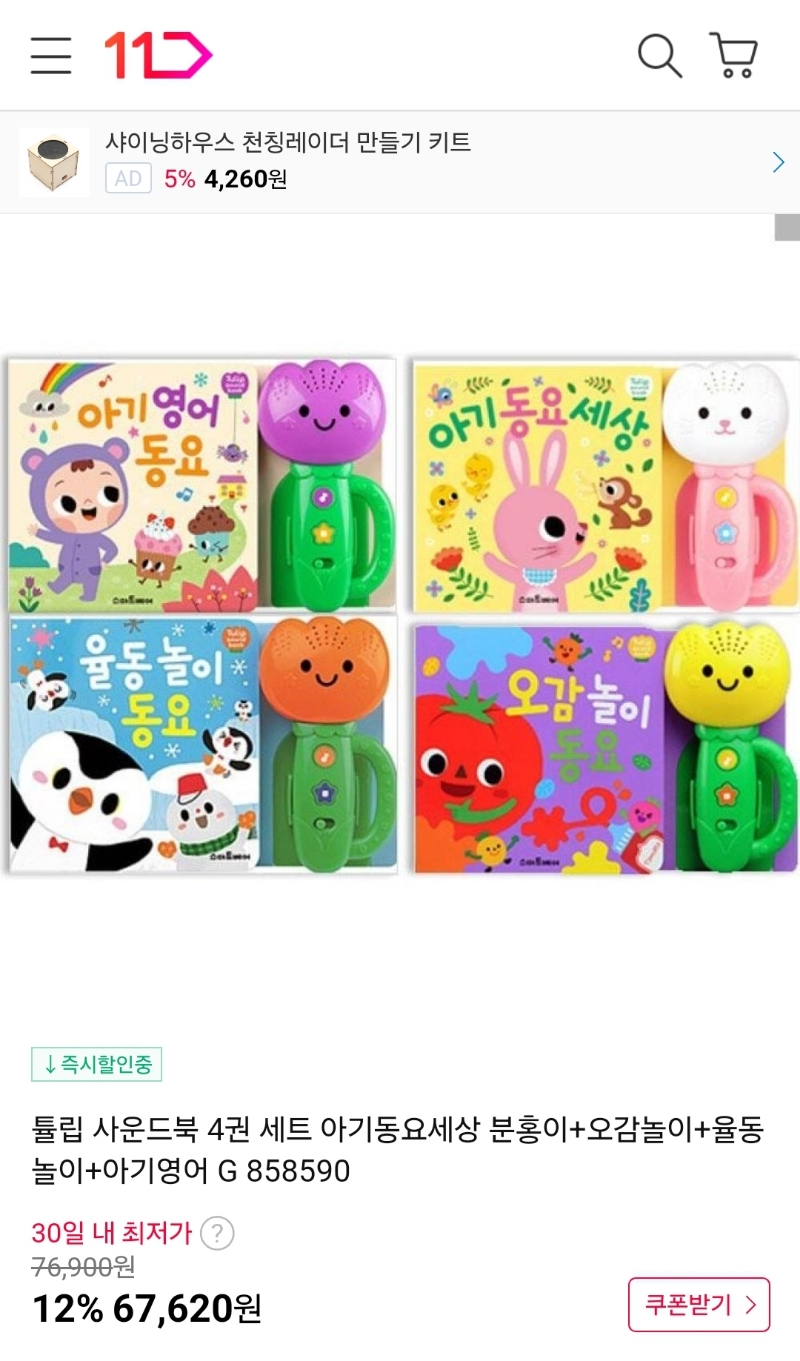 튤립북은 저희 첫째 때 정말 잘 쓴 제품이에요. 둘째는 튤립북을 주로 사용하는 시기에 입원을 오래 해서 많이 못썼는데 첫애는 태어나서부터 돌 지나서까지 주야장천 많이 썼습니다. 외출할 때도 들고나가고 어딜 가든 함께 했어요. 반면 둘째는 아기상어 사운드북을 좋아해서 많이 사용했습니다. 입원실에 있을 때 아기상어책 덕분에 잘 버텼어요.