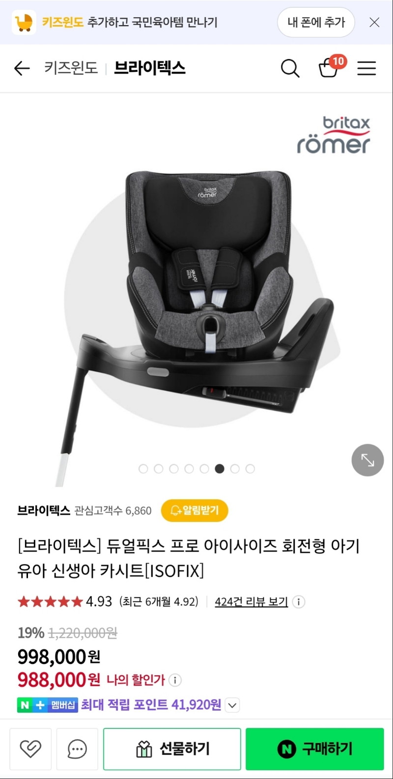 워낙 고가이지만 호불호가 없는 제품이라 가족분들이 출산선물로 하기 아주 좋습니다. 이 제품은 신생아부터 사용이 가능하기 때문에 활용도도 높고요. 카시트는 안전상의 이유로 당근구매를 비추합니다만 주변 지인이 한 아이만 1~2년 태운 제품이라면 물려받는 것도 나쁘진 않을 것 같습니다.