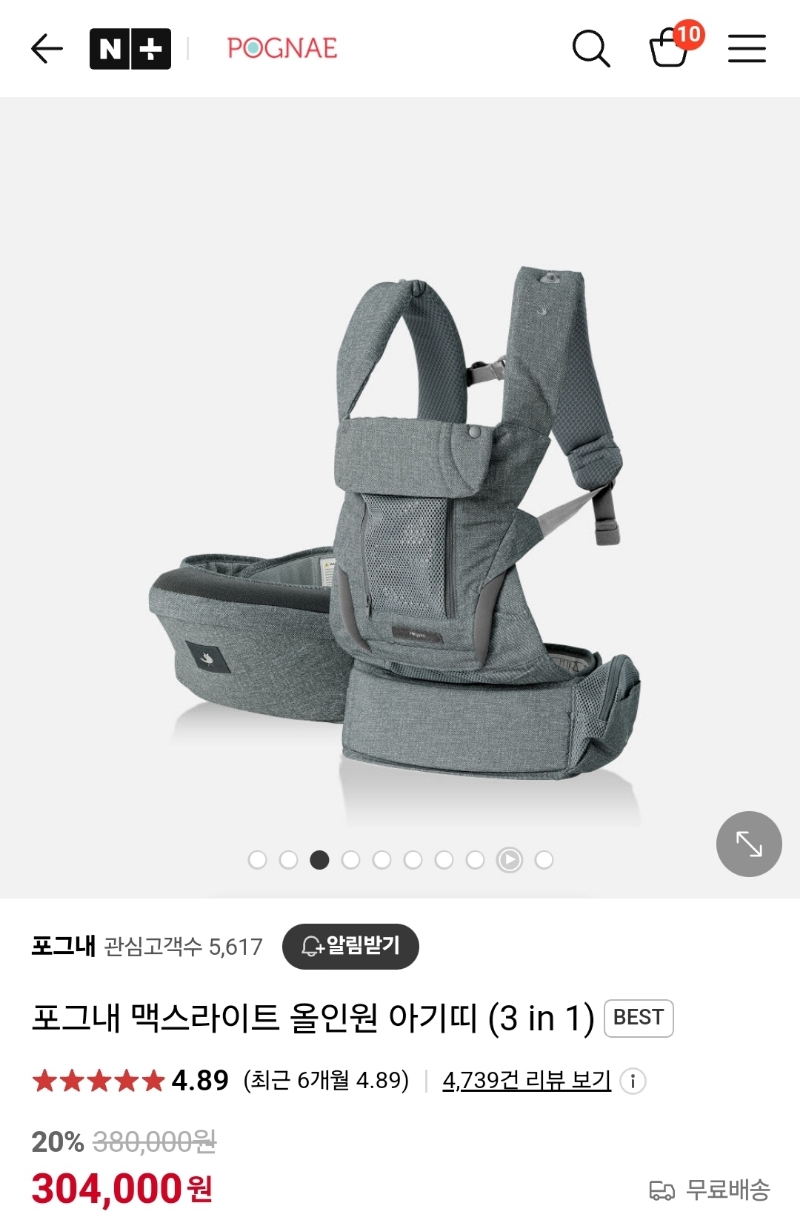 포그내 아기띠는 현재 가격이 304,000원으로 가격대가 높은 편입니다. 제가 구매할 때만 하더라도 약간의 프로모션까지 더해 215,000원에 구매했었는데 3년 사이에 가격이 무척 비싸졌네요.
