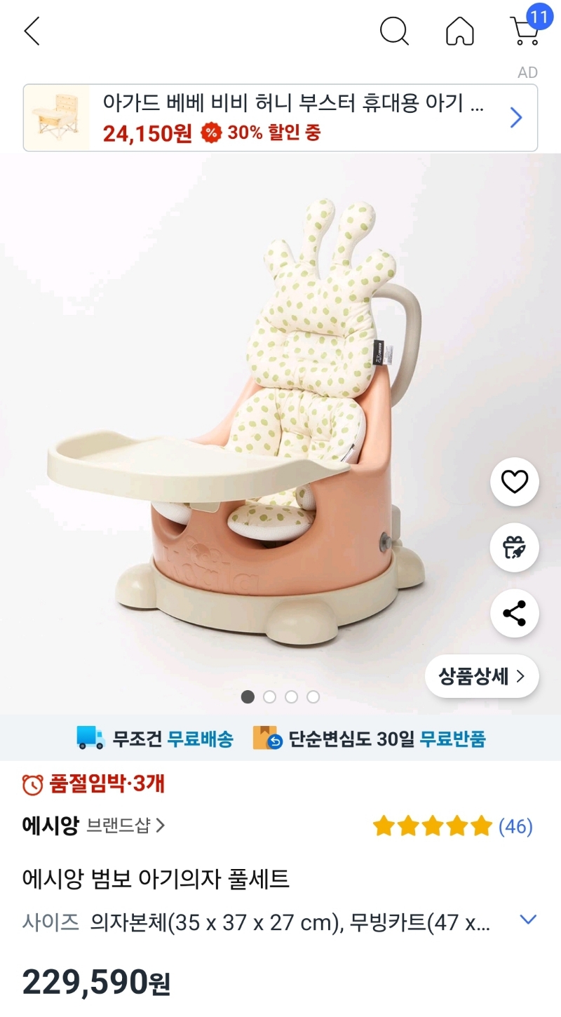 이 제품은 무조건 당근 하기를 추천드려요. 당근에 아주 저렴하게 혹은 나눔으로 올라오는 경우가 많기 때문에 굳이 새 제품 살 이유가 없는 것 같아요. 아기들이 물고 빨긴 하지만 충분히 소독하여 닦을 수 있고 사용시기도 짧기 때문에 당근을 추천합니다.