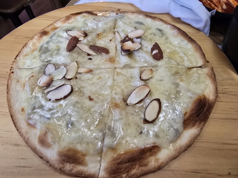 고르곤졸라 피자는 후식으로 제공됩니다. 식사가 마칠 무렵 가져다주시는데 따끈따끈하게 먹을 수 있게 준비해 주셔서 너무 좋습니다. 콤콤한 치즈냄새가 저는 너무 좋더라고요. 저희 신랑도 이 집은 고르곤졸라 피자 맛집이라고 할 정도로 피자가 맛있습니다. 도우 끝쪽도 바삭해서 식감이 좋아요.