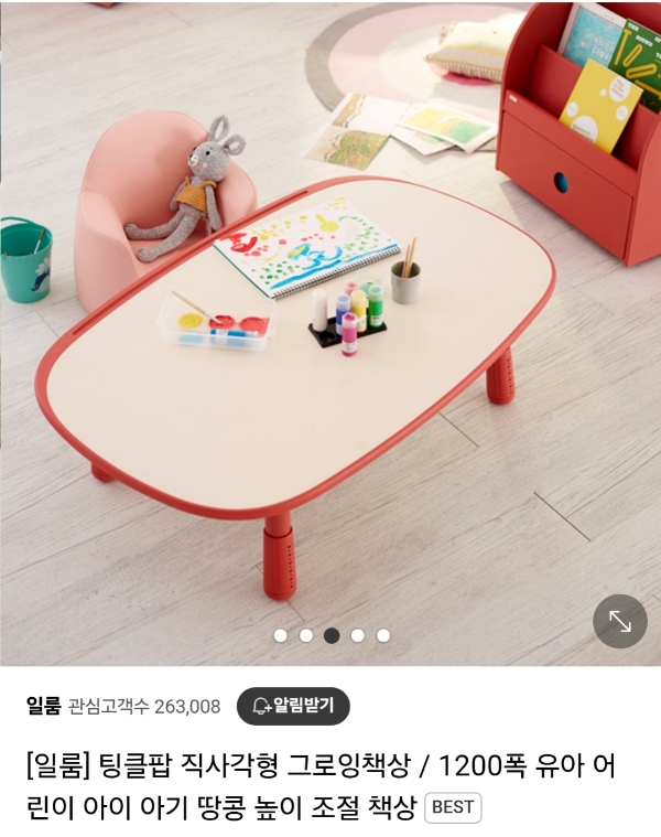 이 제품은 당근으로 1만 원에 구입했어요. 새 제품 정가가 169,000원인데, 당근으로 엄청 저렴하게 구매했죠? ㅎㅎ 어차피 애들은 깨끗하게 못쓰기 때문에 약간의 사용감은 괜찮더라고요. 요즘 이 책상 커버도 따로 나와서 필요하면 커버를 사서 구매하셔도 좋을 것 같아요.(일룸 땅콩책상 커버라고 검색하면 나와요)