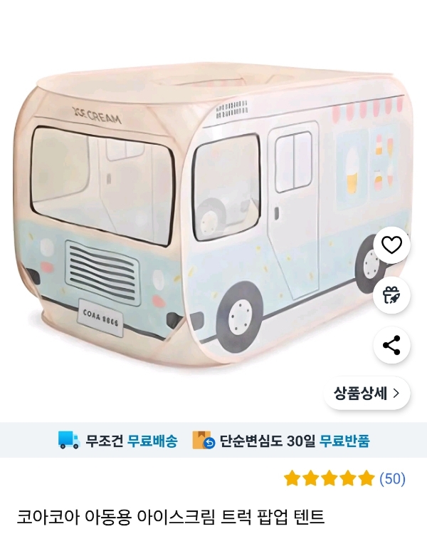 살까 말까 고민했던 제품 중 가장 잘 샀다고 자부하는 것이 이 유아텐트입니다. 제가 산 유아텐트는 아이스크림 트럭 모양을 하고 있는 가벼운 유아텐트인데 지금까지도 아이들이 너무 잘 쓰고 있고 큰아이가 만 4세, 5세가 될 때까지도 잘 사용할 것 같을 정도로 훌륭한 육아템입니다.