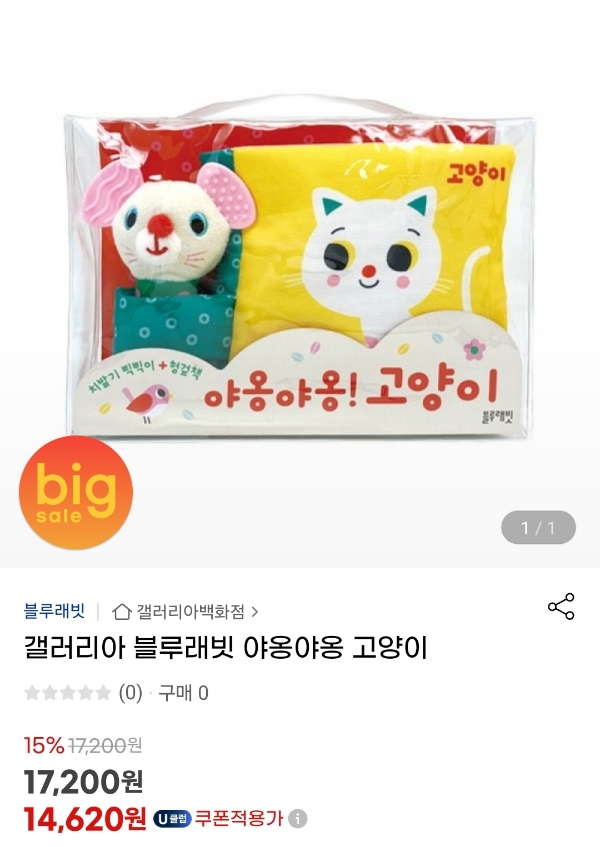 저기 쥐 모양 딸랑이는 손에 쥘 수 있고 꽉 쥐면 소리가 삑~나는 삑삑이입니다. 고양이 그림이 그려져 있는 건 헝겊책인데 바스락 소리가 나서 아기가 좋아해요. 저희 둘째가 이걸 너무너무 좋아했어요. 맨날 물고 빨았던 기억이 아직도 생생하네요.