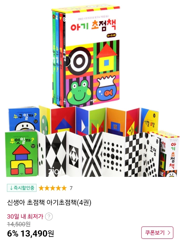 신생아는 아직 흑백으로만 구분한다고 해서 신생아 시기에 이런 초점책을 많이 보여준다고 해요. 이 아이템은 신생아시기부터 뒤집어서 노는 시기인 6개월까지 사용 가능해요.